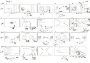 Below are the final storyboards going into animating the sequence, showing the 3D scene and the displays separately to help us make sense of things.